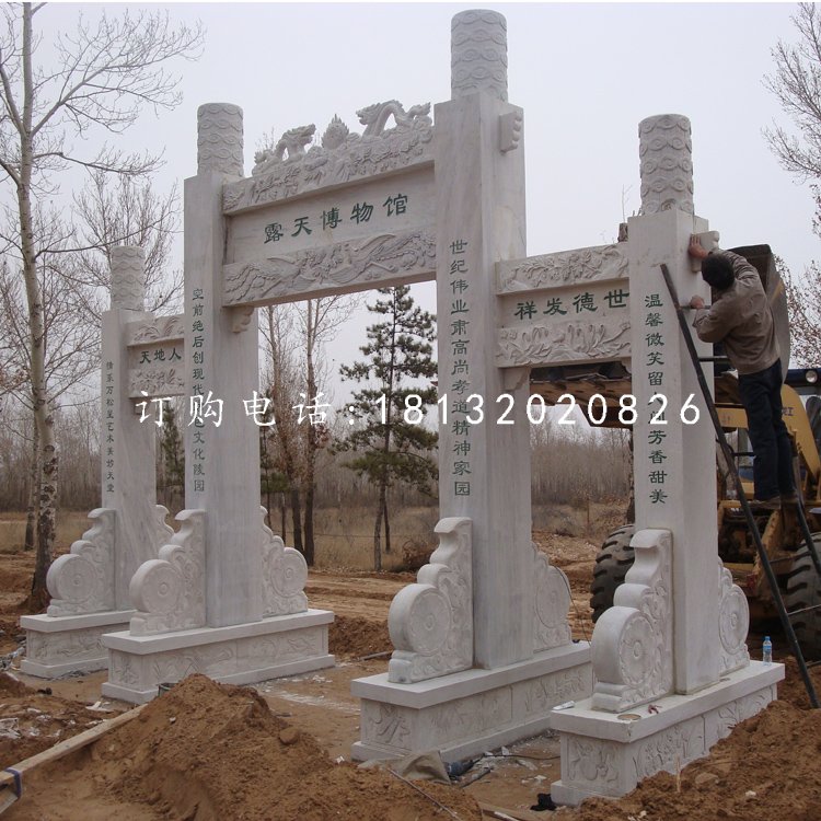 五、天氣要提前關(guān)注,以免影響施工進(jìn)度和工程質(zhì)量。石雕廠家大型石雕牌坊石門(mén)的安裝需要用到水泥或者膠水,若遇上下雨天或者大風(fēng)天,則非常不適合安裝,且存在很大的安全隱患。