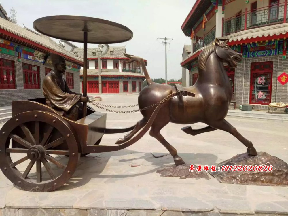 這種馬拉車雕塑也是常見的一種,卓景雕塑公司制作過多次這種馬拉車雕塑,可以做成銅的,也可以做成玻璃鋼仿銅的。