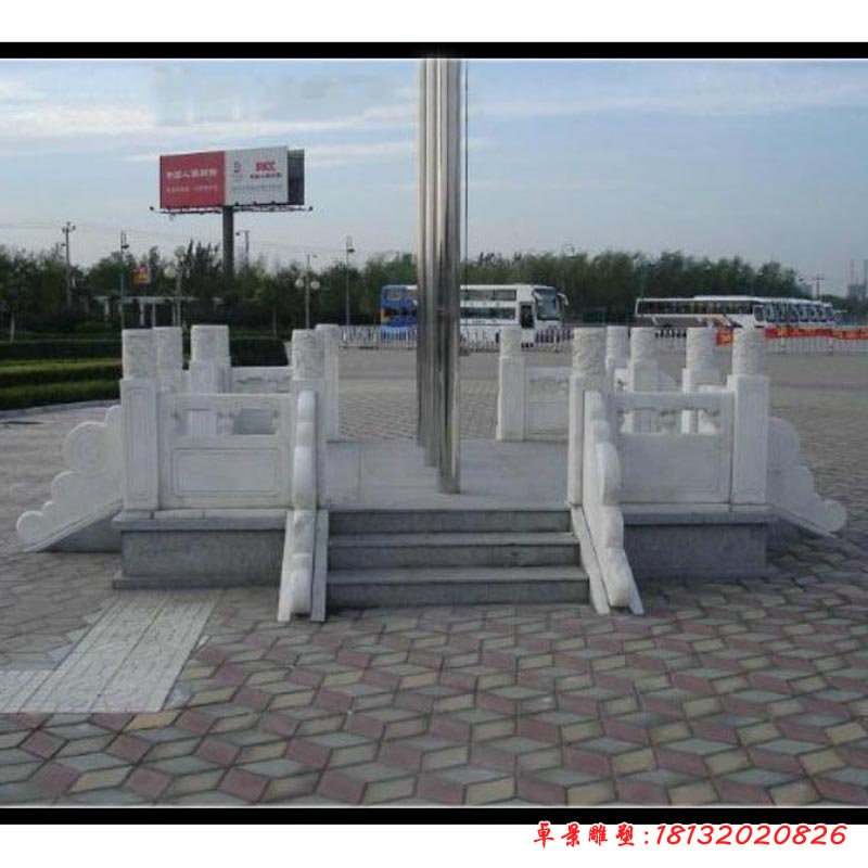 升旗臺,現在一般是用于在政府廣場、大公司、部隊或學校里。升旗臺一般都是用漢白玉雕刻而成的,因為漢白玉在視覺角度上顯得有檔次、高貴。漢白玉旗臺表面潔白無瑕,質地堅實而又細膩,非常容易雕刻。漢白玉升旗臺主要是用來裝飾,一此來表示對國旗神圣不可冒犯,而且漢白玉是純潔的象征。使用漢白玉升旗臺,不同的地方使用的欄桿雕刻的花紋是各有不同的,在政府門前使用漢白玉欄桿的話,欄桿上面一般是雕刻花草之類的圖案,而在學校、部隊、公司一般也都是雕與其本身相關的圖案。