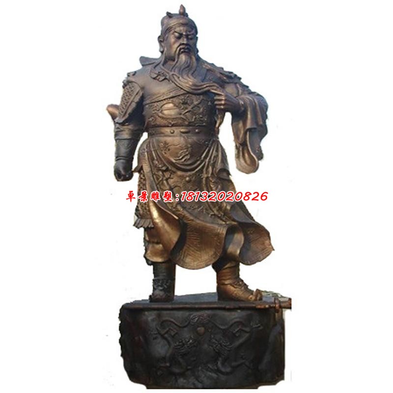 關公,是忠義的化身,東漢末年著名將領,自劉備于鄉里聚眾起兵開始追隨劉備,是劉備最為信任的將領之一。在關羽去世后,其形象逐漸被后人神化,一直是歷來民間祭祀的對象,被尊稱為關公;又經歷代朝廷褒封,清代時被奉為忠義神武。后來人們為了紀念這位英勇蓋世的人物,許多人為他鑄造了銅關公雕像來紀念這個人物。