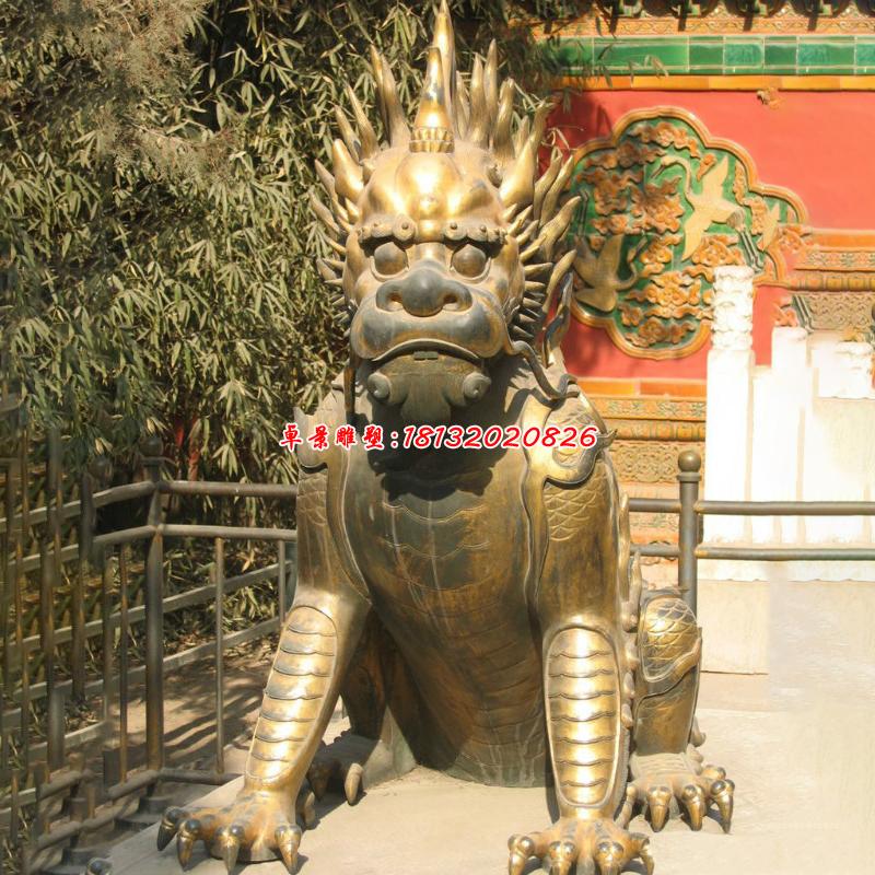 銅雕麒麟是一種吉祥的靈獸之王,安放在家中,有鎮宅辟邪,增添家中吉祥的作用,現在隨著雕刻技術的不斷發展和創新,銅雕麒麟現在的雕刻形象造型多樣,麒麟是中國古代神話傳說中的神獸,據說能活兩千年。性情溫和,不傷人畜,不踐踏花草,故稱為仁獸。麒麟的首似龍,形如馬,狀比鹿,尾若牛尾,背上有五彩毛紋,腹部有黃色毛。麒有獨角,麟無角,口能吐火,聲音如雷。