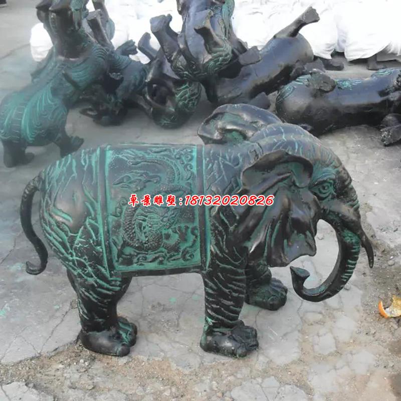 銅雕大象是智慧、力量、團結的象征,它們屬群居動物,社會團體結構以母象及幼象為主。代表著家庭,單位,團體,派和社會的團結,融洽與和諧。象諧祥之音,傳統習俗中,象代表了吉祥。象能給人間帶來祥瑞,象微天下太平。象即表示和平、美好和幸福。大象力大魁武,性靈卻溫和柔順,相傳象為搖光之星生成,能兆靈瑞,古佛就是乘象從天而降;大象善于吸水,水為財,達到汲水納財之功。