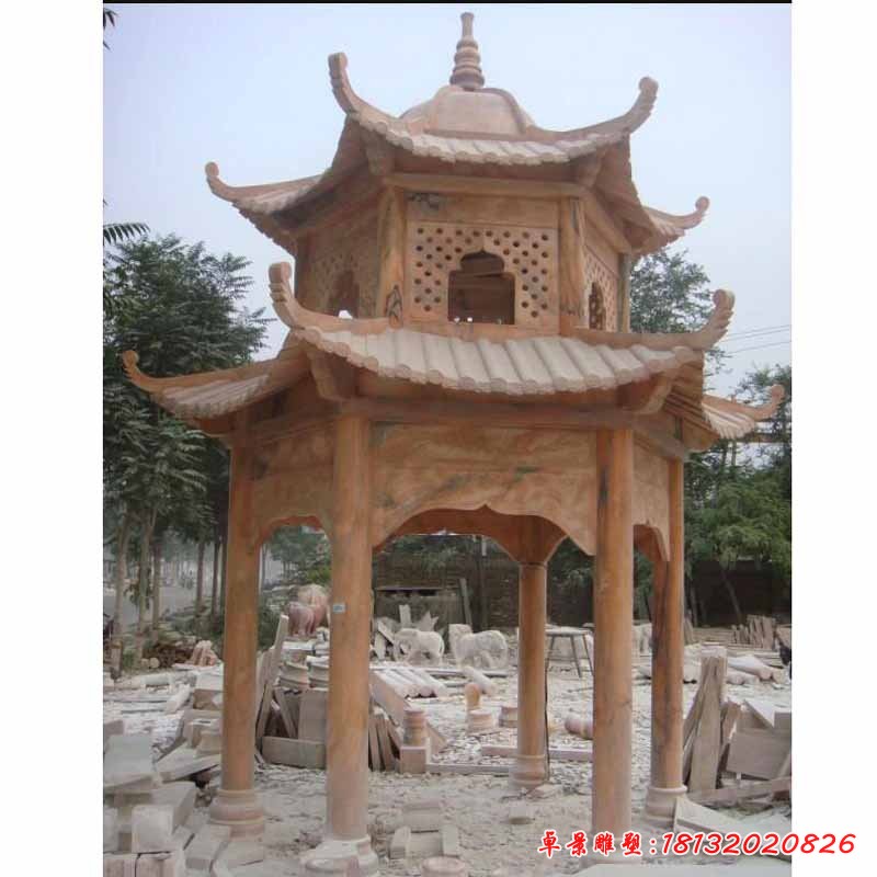 兩層涼亭石雕