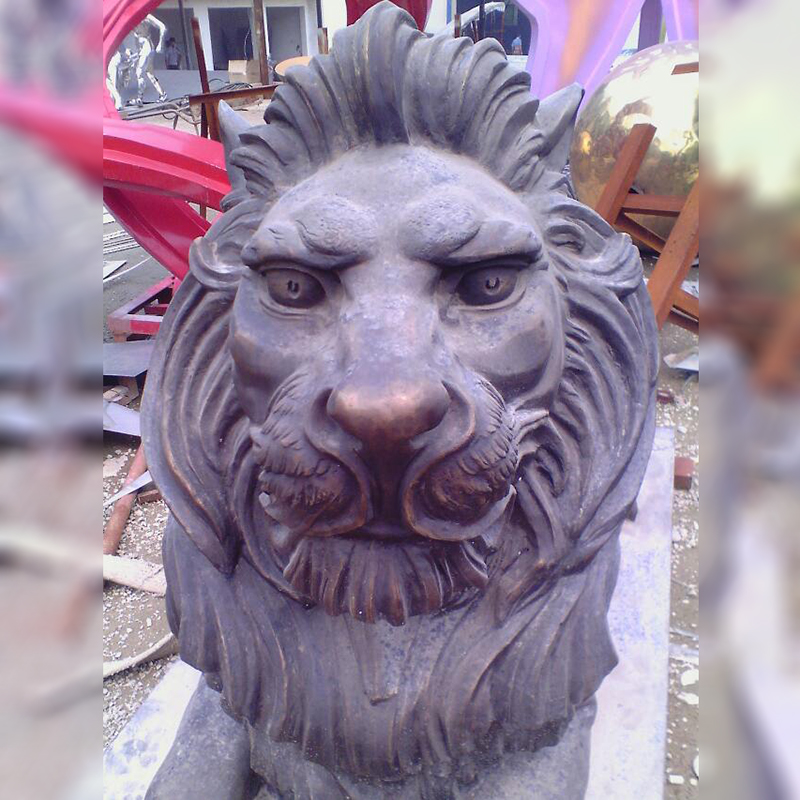 獅子永遠矗立在大門口的兩旁,它不畏寒風烈日,腳踏實地,始終如一地與您忠誠相伴;它高貴、尊嚴,極具王者風范;它威武、吉祥,被奉為護國鎮邦之寶.在中國眾多的園林名勝中.各種造型的銅獅子隨處可見.古代的官衙廟堂、豪門巨宅大門前,都擺放一對銅獅子用以鎮宅護衛.直到現代,許多建筑物大門前,還有這種安放銅獅子的風氣。
