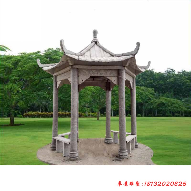 石雕亭子是中國的一種傳統建筑,其頂棚有六角、八角、圓形等多種形狀。現在很多旅游景點都建造石亭子,如果建造在園林中不但有建筑美,而更能體現出文化的內涵,深知中國文化的博大精深。