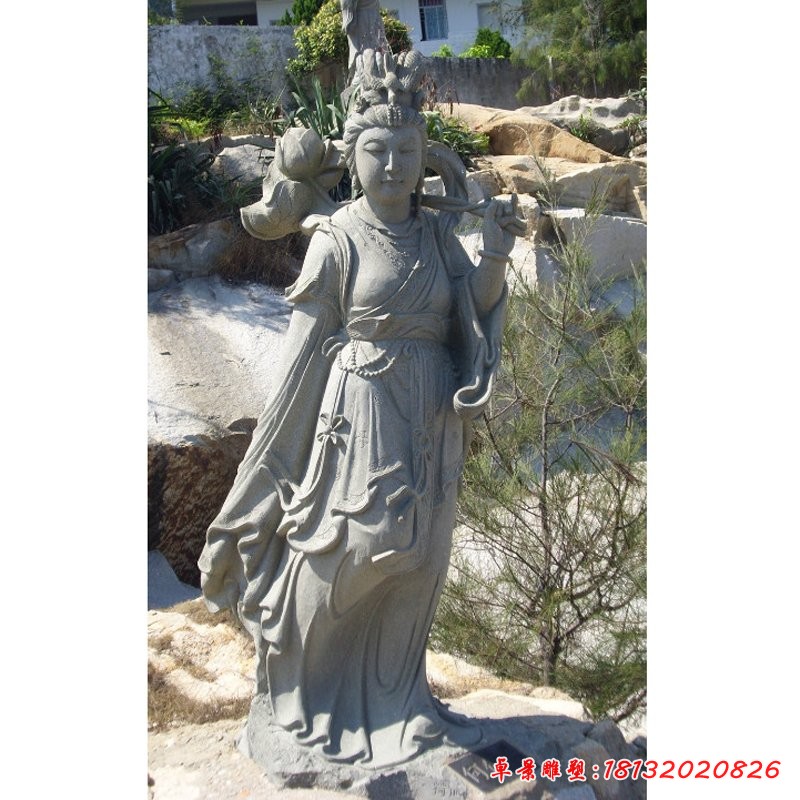 何仙姑——八仙之一,八仙中唯一的女性,巧降及時雨。歙南 覆船山,十道石門內,有座何仙姑廟,傳承千年,坐落在倒掛荷花的龍穴里面,因為她在這個荷花形里面羽化登仙的,隱喻二層意思:一,倒掛,迎合 覆船 山的妙意(也稱佛全山,山上全是佛),是佛光覆蓋,普照的意思,二,荷花,佛的蓮花座,佛生于蓮,佛的空性,佛的根性。所以她的形象是手持荷花,是故雅稱:“荷仙姑”。