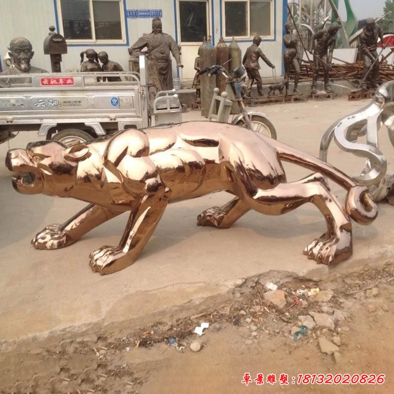 豹子雕塑 不銹鋼動物雕塑