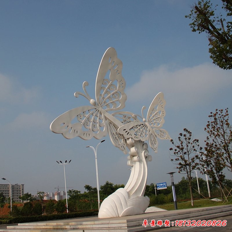 蝴蝶不銹鋼雕塑風格獨特,制作手法與眾不同,使得風格統一、千篇一律的建筑風格正向富有個性特征和風格多樣化轉變。富有特色的生活小區已占據了越來越多的城市空間.城市雕塑的發展也將隨著環境和公眾意識的變化走向個性化。