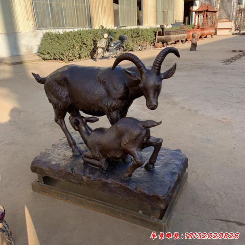 羊在古代與祥相通,祥也可寫作吉羊,表示吉祥之意,羊是祥瑞的象征。古人年初在門上懸羊頭,交往中送羊,以羊作聘禮,都是取其吉祥之意。因而銅雕山羊寓意吉祥。在古人的觀念里,羊是美善的象征?!对娊洝分杏幸皇质灼麨楦嵫虻脑?,用羔羊比喻品德高尚的卿大夫。《說文》有美與善同義之說。羔羊似乎懂得母親的艱辛與不易,所以吃奶時是跪著的。羔羊的跪乳被人們賦予了至孝和知禮的意義?!洞呵锓甭丁吩疲焊崾秤谄淠?,必跪而受之,類知禮者。